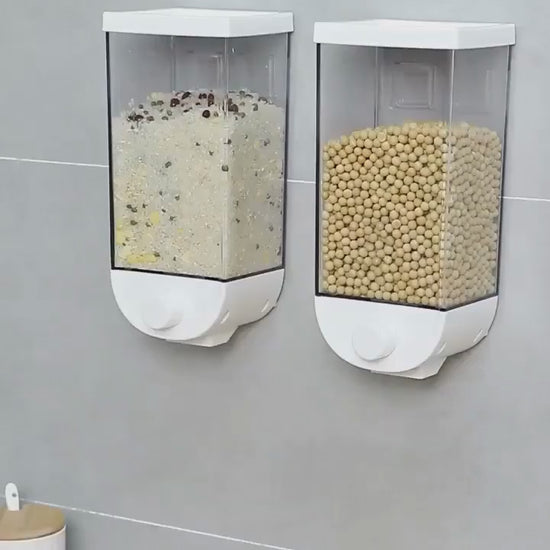 Organize your kitchen effortlessly with this self-adhesive grain dispenser. Designed for wall mounting, it stores rice, grains, and dry fruits hygienically. The compact storage box saves space, keeps food fresh, and allows easy dispensing, making it a practical and mess-free kitchen food organizer.