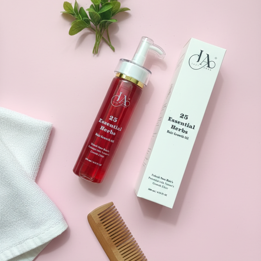 Unlock your hair’s true potential with Just Amna 25 Essential Herbs Hair Growth Oil, a natural formulation designed to support healthy hair growth from root to tip. This herbal growth elixir is infused with 25 carefully selected essential herbs that deeply nourish the scalp, strengthen hair follicles, and help reduce hair fall and breakage.